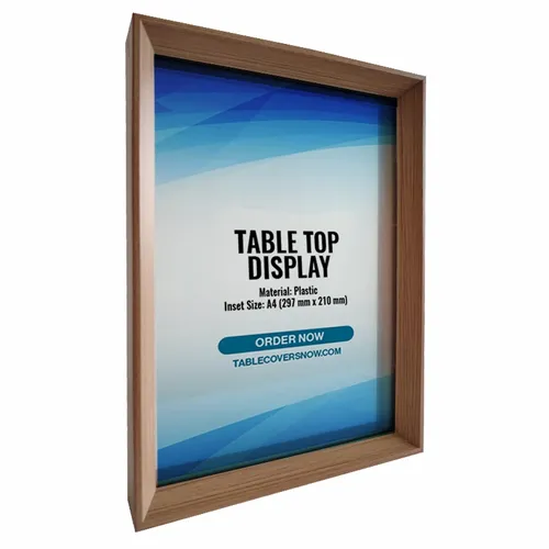 A Framed is a practical and versatile tool used to showcase signs, labels, or other informational materials on a desk or tabletop surface. This display is made of Acrylic film and Medium Density Fiberboard.