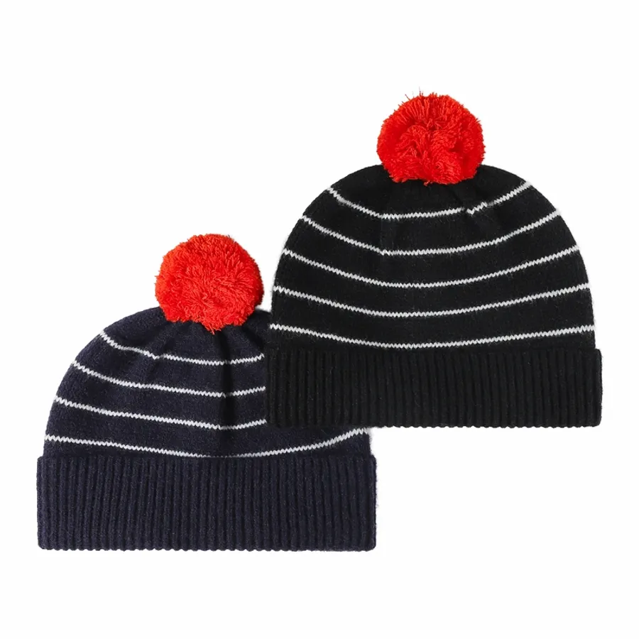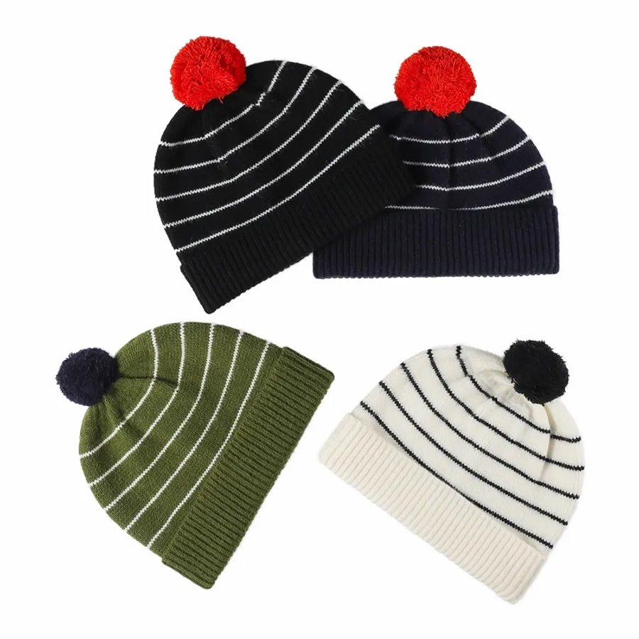 - Stripe Pom Beanie