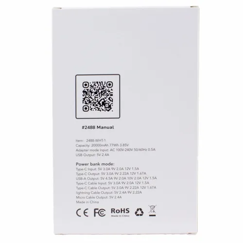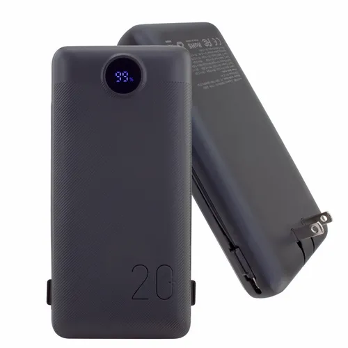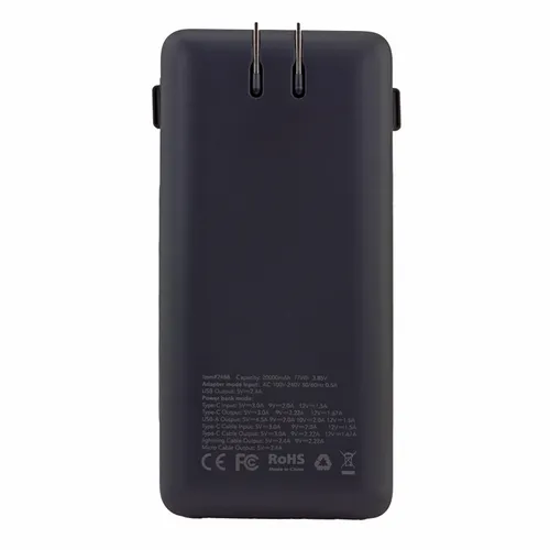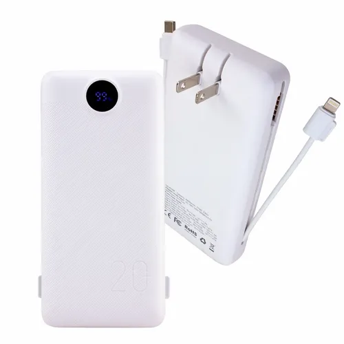 - Charge All 20K Power Bank with Integrated Charging Cables and AC Plugs