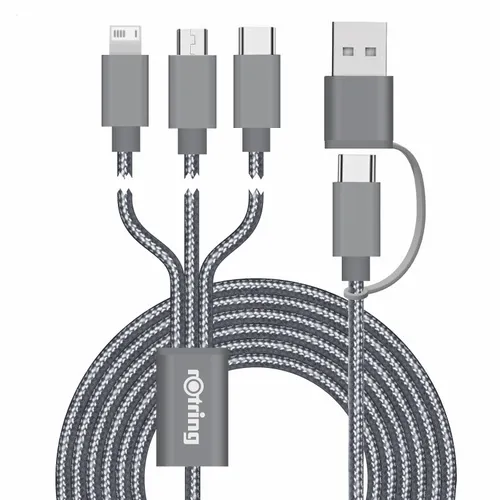 - Connect Reach 5ft 3-in-1 Braided Charging Cable with Type-C Inputs