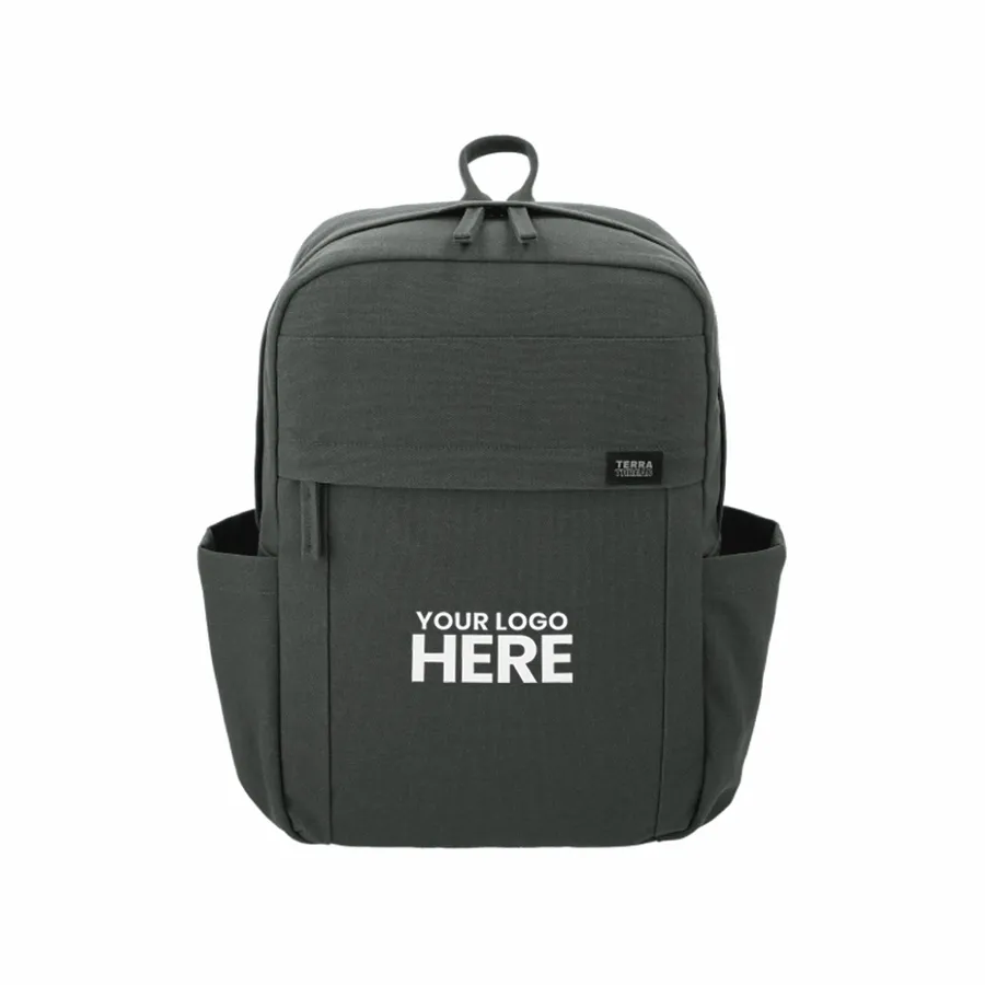 Looking for a sustainably and ethically made backpack for college, work, travel, hiking or other outdoor activities? The spacious and durable Terra Thread Fairtrade Earth 15 Computer Backpack is the workhorse of our line, built for everyday carry with heavy-duty 397 g certified organic cotton canvas that is made in a Fair Trade Certified™ Factory. The generous main compartment is divided with a no-fuss sleeve for your laptop and one small interior pocket to keep things organised. Two water bottle sleeves and the large zippered exterior pocket keep hydration and frequently needed items close at hand. Your purchase also supports Feeding Americas campaign to end hunger by helping donate meals to kids and families in need.