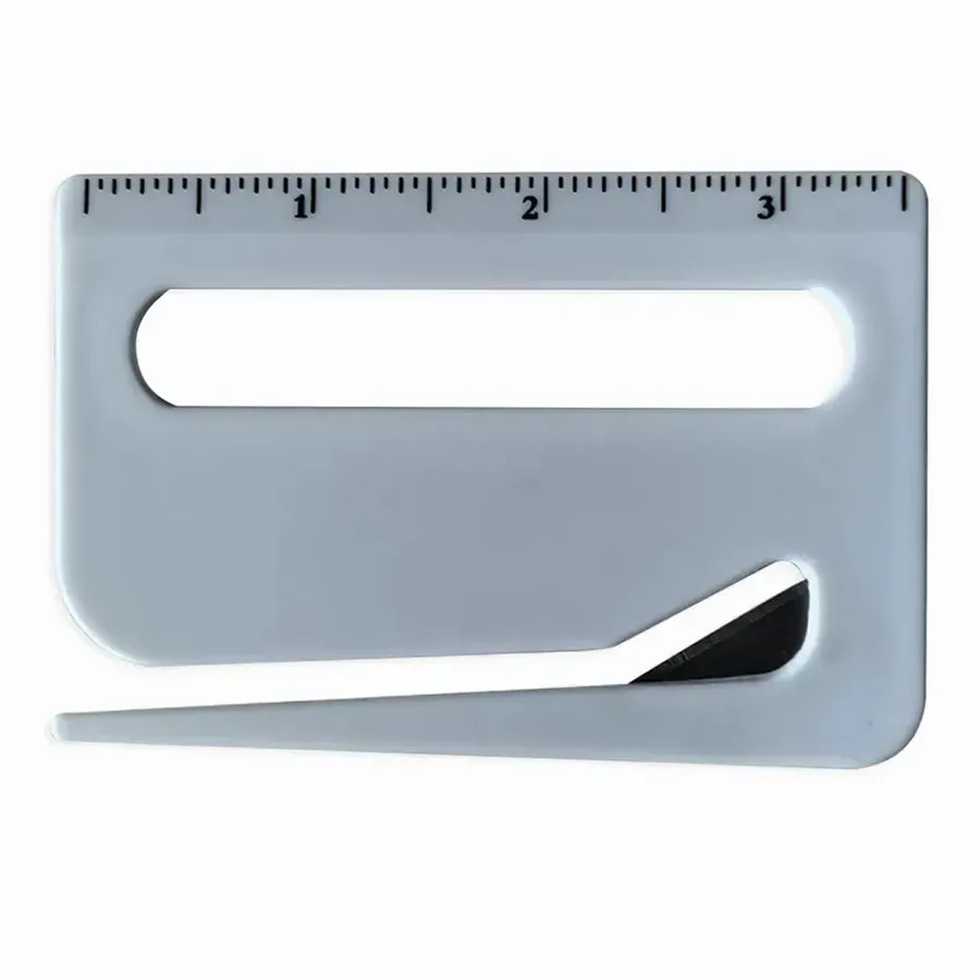 Featuring easy-to-read measurement markings and a hidden metal blade, this handy plastic tool is perfect for offices, schools, or trade show giveaways.