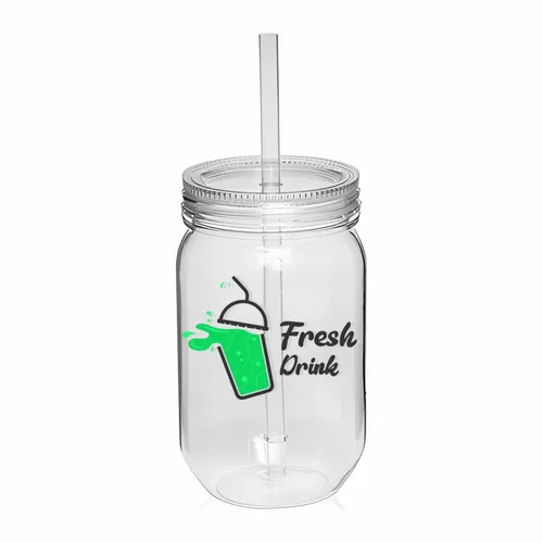710 mLDrink Easy Mason Jars with Straw are the perfect way to enjoy your favourite drinks on the go. These durable and lightweight jars are made with single wall construction and feature a matching straw and lid. This product is available in a variety of colours. Order your 710 mL Plastic Mason Jars with Straw today and enjoy your favourite drinks hands-free!