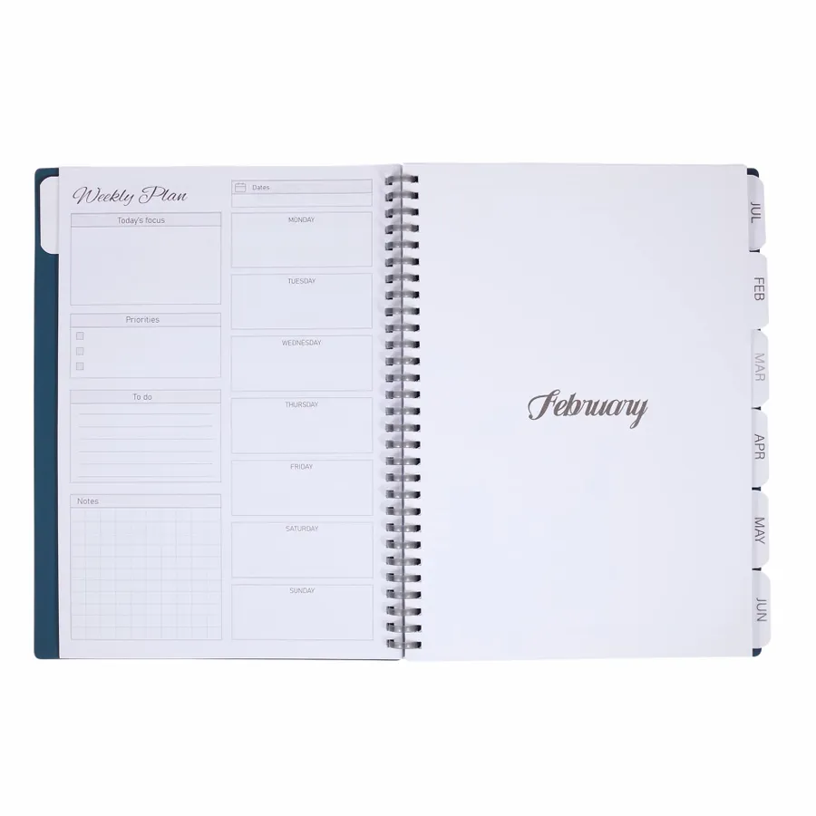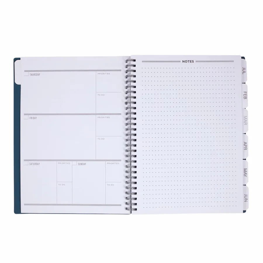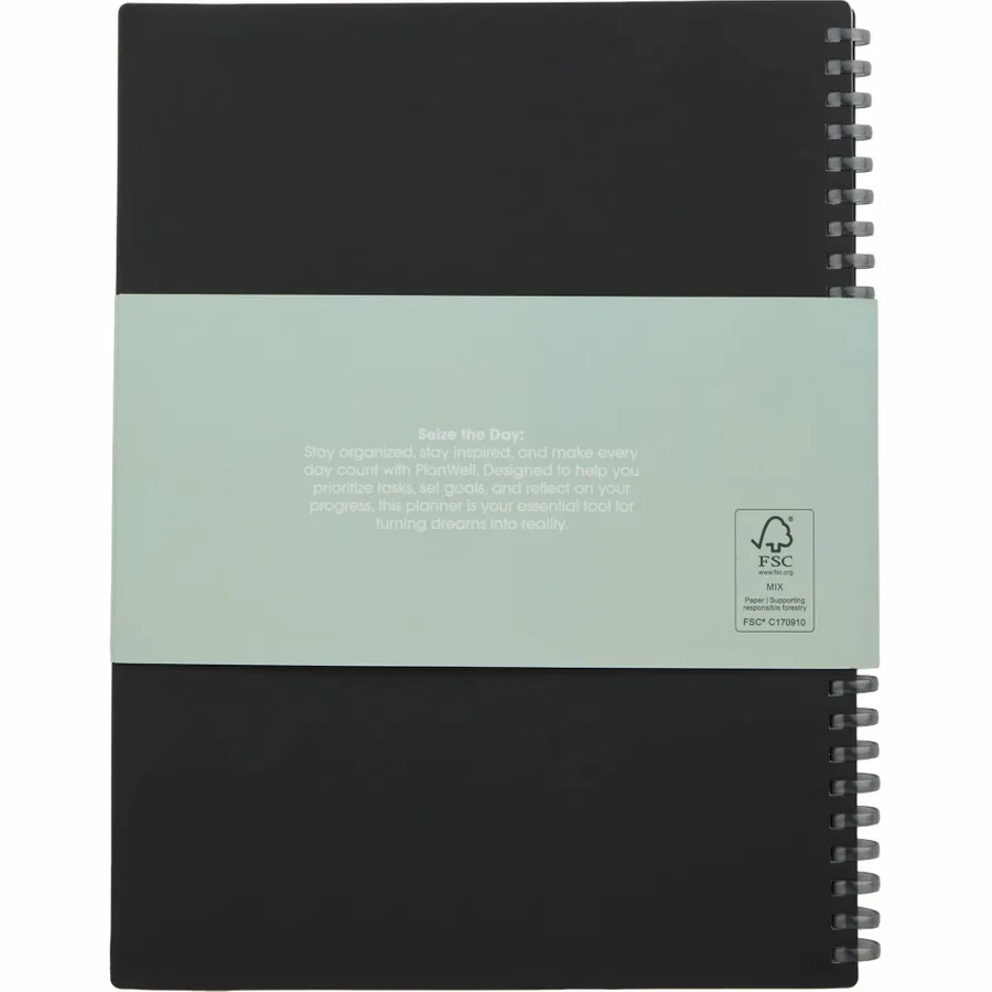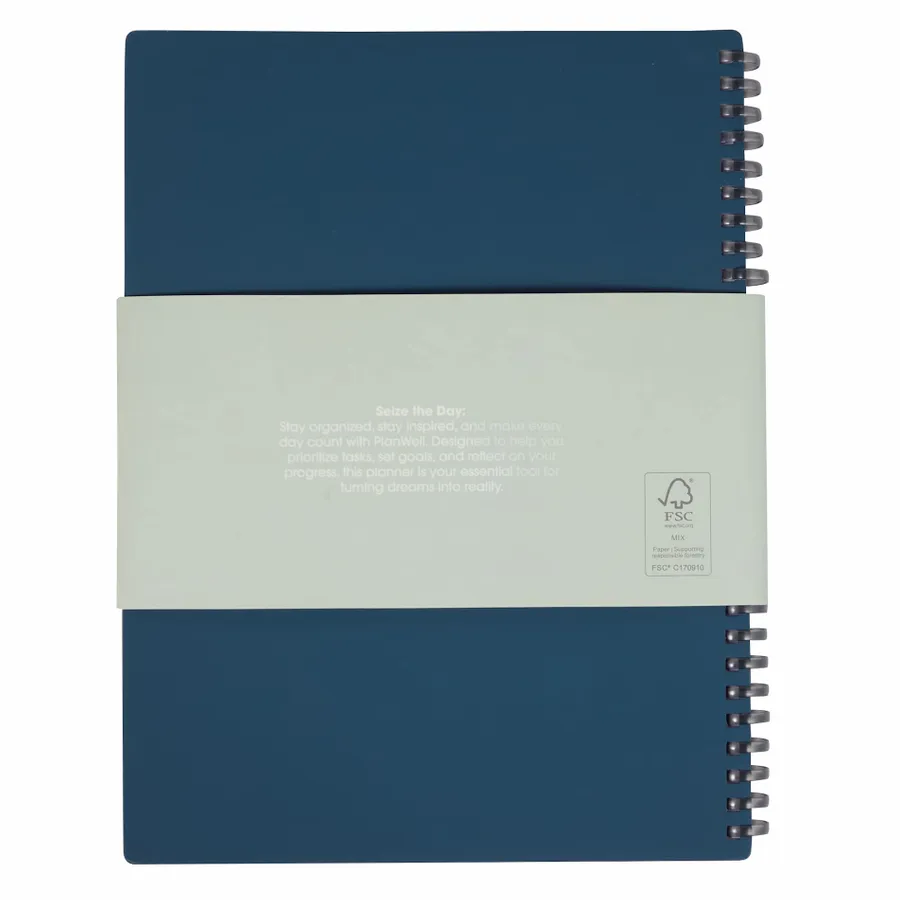 Get organized and simplify your daily routine with the Wellable™ Plan Well Undated Planner Journal. Designed for flexibility, this planner features a smooth, 58% recycled post-consumer polyester and 42%polyurethane cover with a flexible binding, making it easy to take notes and stay on track. Inside, you’ll find undated calendar sheets, task lists, tracker pages, and a sticker flag page to help you highlight important tasks and goals. Perfect for customizing your schedule, this planner is the ideal tool for staying focused and organized every day. Comes packaged with a branded FSC Mix bellyband.