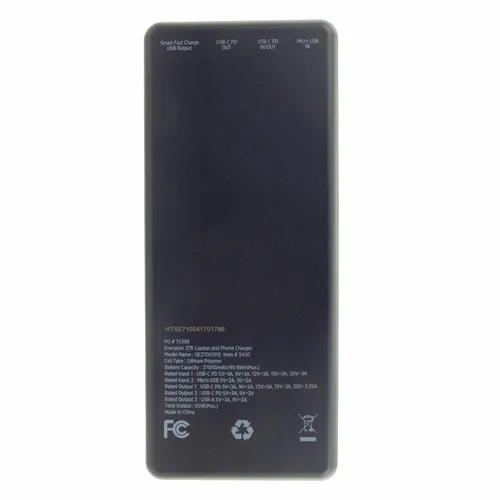 Equipped with a high-capacity 27,000mAh battery, this power bank can charge multiple devices throughout a busy workday. With a sleek and compact design, this power bank is the perfect companion for work, a long flight, or a weekend adventure.