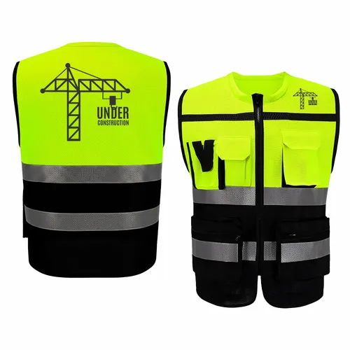 Take on the toughest worksites with confidence in our Heavy-Duty, Two-Tone Safety Vest. Built from durable warp-knitted fabric, this vest is designed to deliver exceptional strength, comfort, and long-lasting performance in demanding environments. The two-tone colour design with contrasting black trim not only enhances visibility but also gives a sharp, professional look that hides dirt and wear. Equipped with five practical pockets, Velcro-secured on the top and zippered on the bottom, it provides convenient storage for tools and essentials, helping your team stay organized on the job. Add your company logo to elevate your crew’s professional image and showcase your brand’s dedication to safety, reliability, and quality.