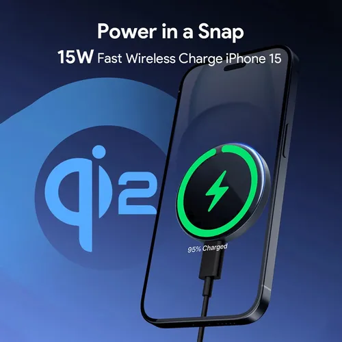 Certified by the Qi2 standard ensuring compatibility and reliable charging for Qi-enabled devices. Incorporate a strong magnetic attraction ensuring a secure connection between your iPhone and the charger. Plus, it can provide 15W of wireless fast charging for iPhone 15 series and models running on iOS 17.2 or higher. A sleek and compact design seamlessly blends into any environment. Features a tempered glass surface to ensure sturdiness and longevity while adding a touch of elegance.