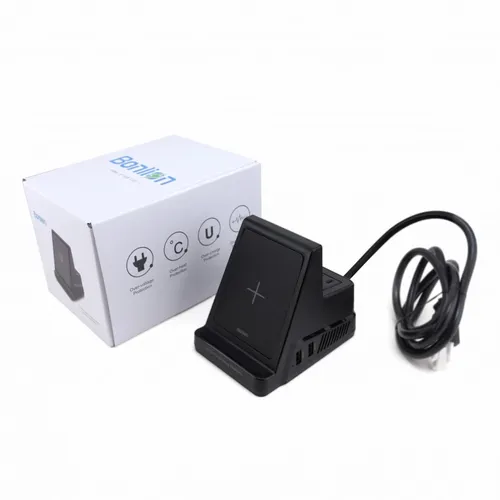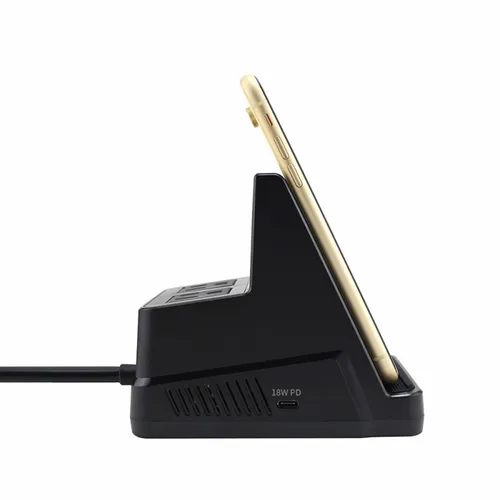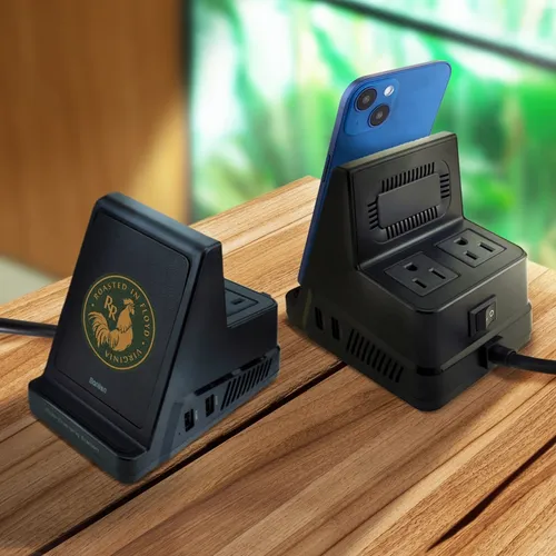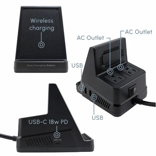 A compact powerhouse of a docking station that everyone with an active lifestyle or business style needs on their desktop. Rest your device on the dock for a fast charge and comfortable vertical viewing angle, so you can easily monitor incoming calls or maintain important face-to-face video calls when you need your hands free. The dock provides 5 additional high-speed charging ports: 2 USB, 2 AC outlets, and USB-C.